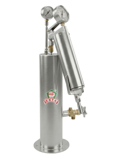 filling, while the integrated pressure gauge clearly displays the CO₂ pressure level and safe operating range up to the