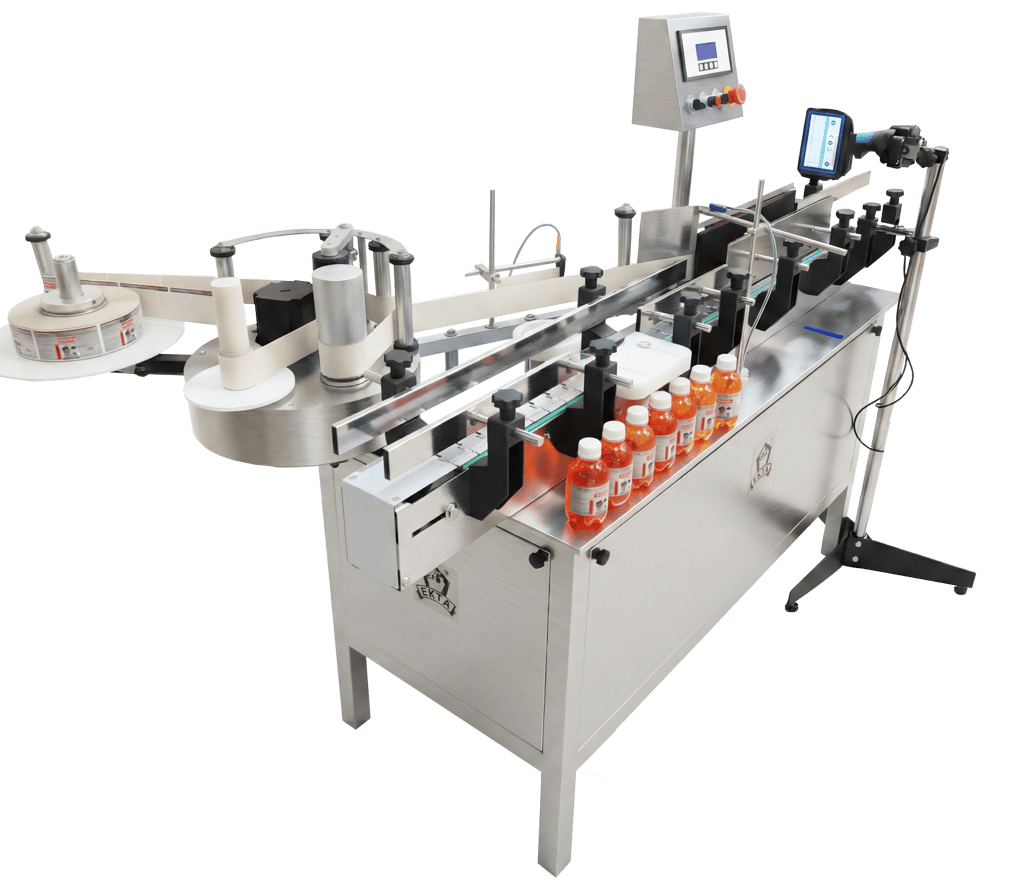 label application on round bottles of various sizes. It helps save time, reduce labour, and improve overall packaging